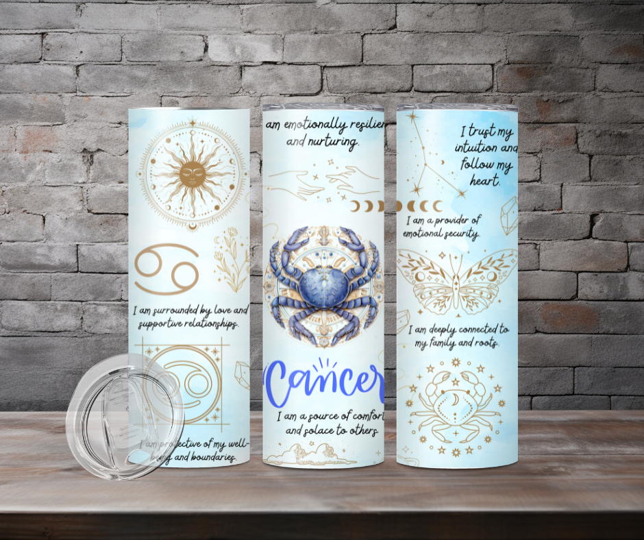 Wrap yourself in comfort with this nurturing Cancer tumbler. Known for emotional depth and loyalty, this design reflects your caring nature and will keep you feeling secure and refreshed all day long.
