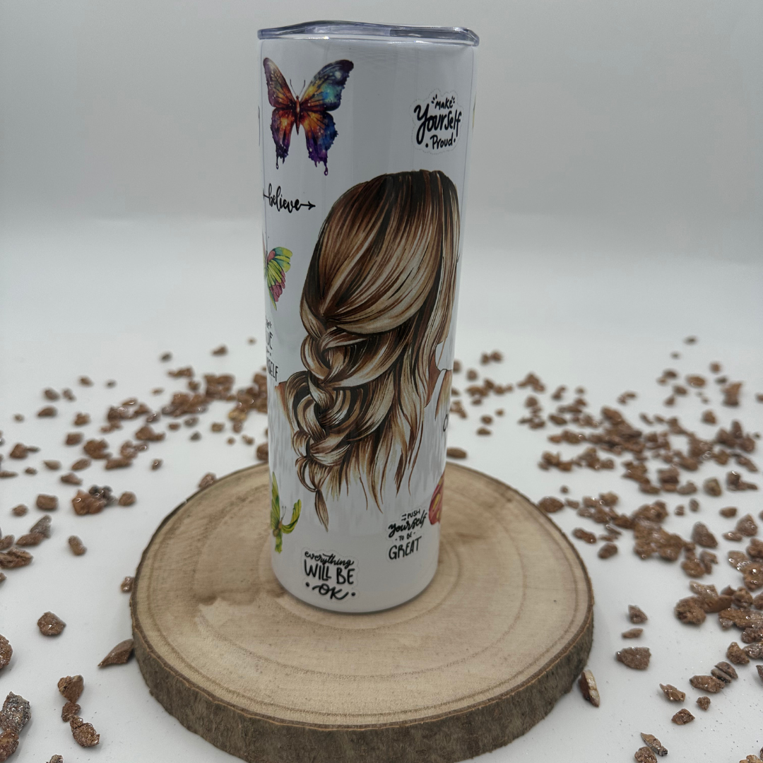 Discover our high-quality 20 oz tumbler, perfect for your daily beverage enjoyment, whether hot or cold! Made from double-walled, insulated stainless steel, this tumbler ensures that your drinks stay at the ideal temperature for some time - whether iced coffee, tea or water.